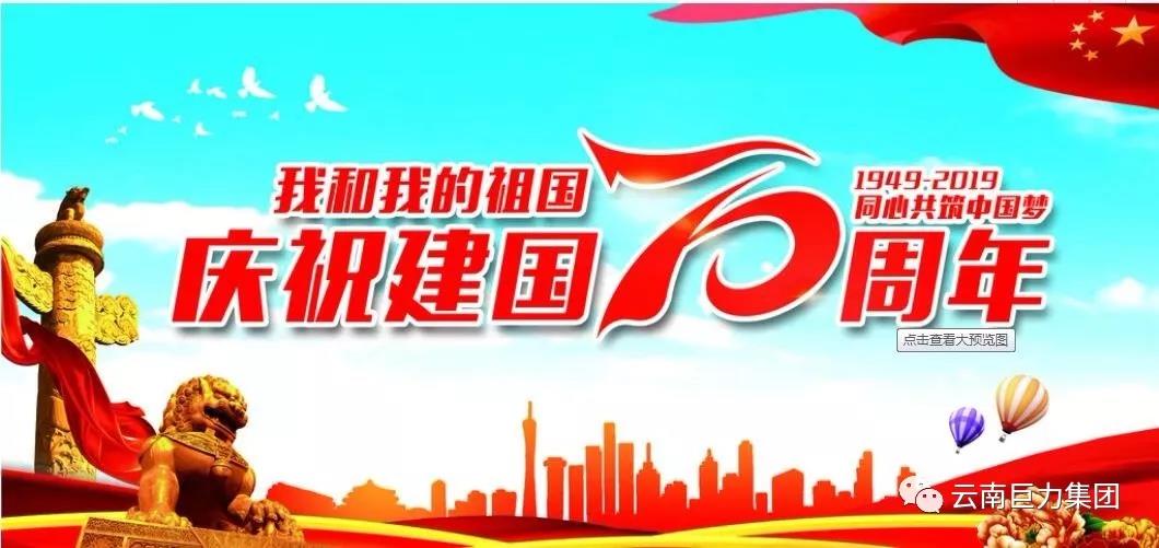 值此新中國(guó)成立70周年之際,巨力集團(tuán)衷心祝福我們的偉大祖國(guó)更加繁榮昌盛,祝愿中華大地國(guó)泰民安。也祝愿所有員工客戶和各界朋友節(jié)日快樂(lè)!