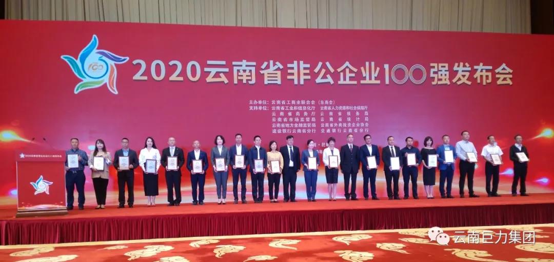 云南巨力集團榮獲2020年“云南省非公企業(yè) 100 強”第63位