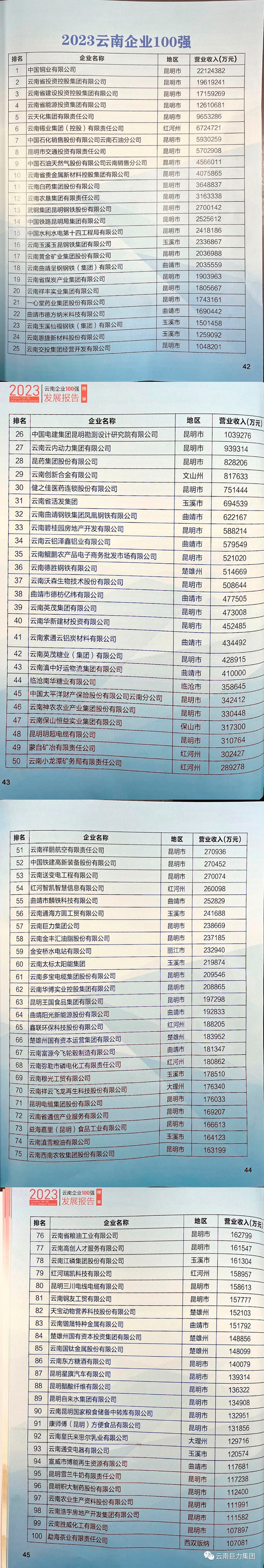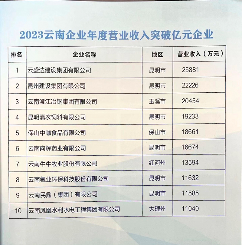 “2023云南企業(yè)100強(qiáng)”完整榜單——