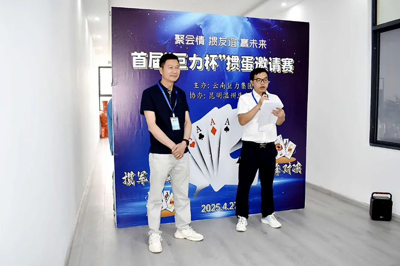 4 月 27 日,由云南巨力集團(tuán)主辦,昆明溫州總商會協(xié)辦的首屆“巨力杯” 摜蛋邀請賽在云南巨力集團(tuán)圓滿收官。來自昆明溫州總商會和云南省溫州商會的32 位商界精英齊聚一堂,以牌為媒介,在牌桌上展開一場別開生面的智慧與協(xié)作盛宴,共同奏響 “聚商情、摜友誼、贏未來” 的動人樂章。