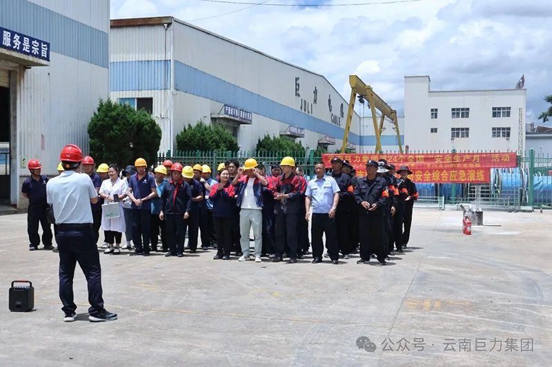2025 年 6 月 25 日下午,當夏日的驕陽炙烤著大地,云南巨力集團產(chǎn)業(yè)園區(qū)內(nèi)卻涌動著一股“安全熱潮”—— 一場規(guī)模宏大、內(nèi)容豐富的消防安全系列演練活動在這里如火如荼地展開。作為 2025 年安全生產(chǎn)月系列活動的 “重頭戲”,此次演練猶如一場生動的 “安全課堂”,為集團全體員工上了一堂意義非凡的實踐課,全力筑牢企業(yè)安全生產(chǎn)的堅固防線。