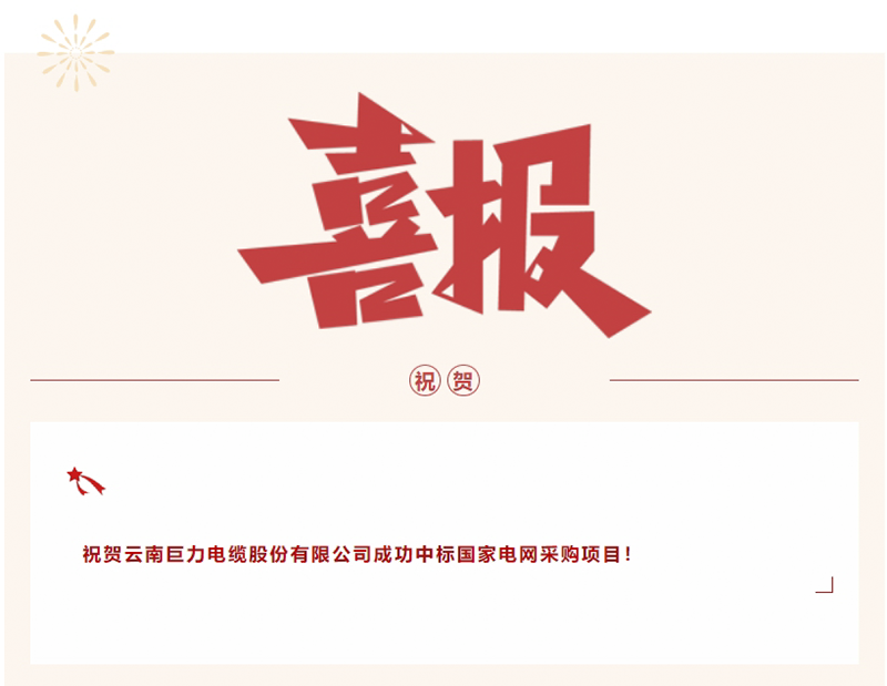 喜訊:云南巨力電纜中標(biāo)國(guó)家電網(wǎng)公司采購(gòu)項(xiàng)目!
